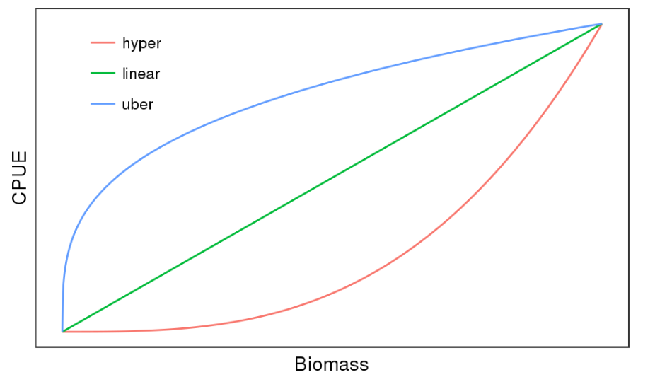 The most common non-proportionality involves CPUE remaining high while abundance declines. This is known as “hyperstability” and can lead to overestimation of biomass and underestimation of fishing mortality or the opposite “hyperdepletion”.